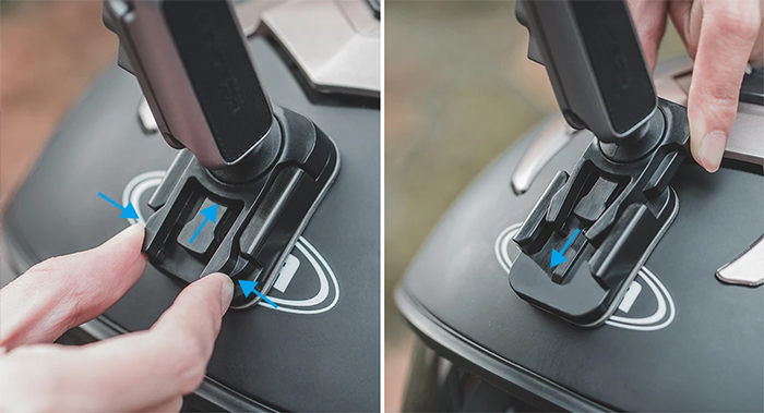 Крепление на любую гладкую поверхность (плоскую или изогнутую), в том числе на приборную панель или на шлем.